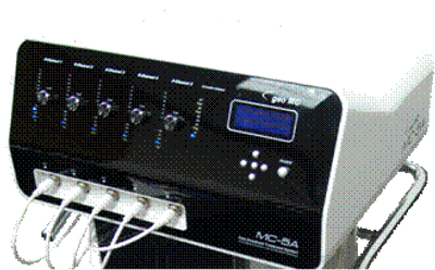 Five independent channels are available to transmit the artificial “no pain” messages via surface electrodes (non-invasive) placed on the skin outside the region of the patient’s pain. Protocols are different based on the types of pain treated. It stimulates C fibers (pain carrying fibers) in a physiological form vs. TENS unit excessively stimulates A-Beta fibers to suppress signal transmission by C-fibers.